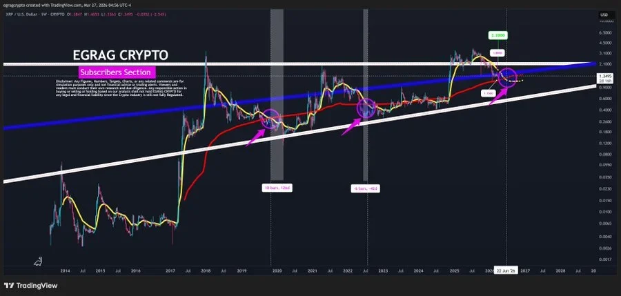 The analyst is monitoring specific price levels. Closing above $1.80 on a weekly basis will show a reclaim of the structure. Holding above $2.20 will show a break and a thrust for XRP to go up. Altcoin failing to reclaim $1.80 suggests that there is a downside risk for XRP.