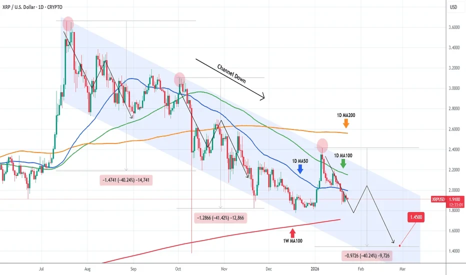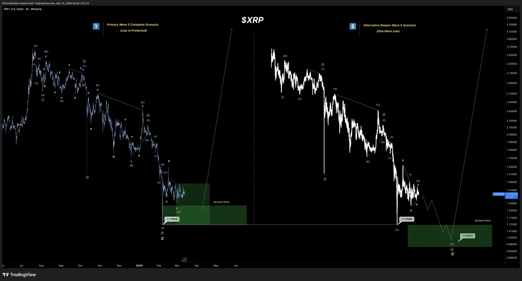Despite the recent upward movement, the longer-term chart still shows XRP moving inside a downward channel that has guided the market since the all-time high recorded on July 18, 2025. This structure has defined the broader correction phase, which some analysts describe as part of the current bear cycle.